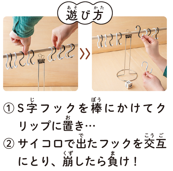 S字フックをかけていくようにするなど、ルールを変えて遊んでみよう!