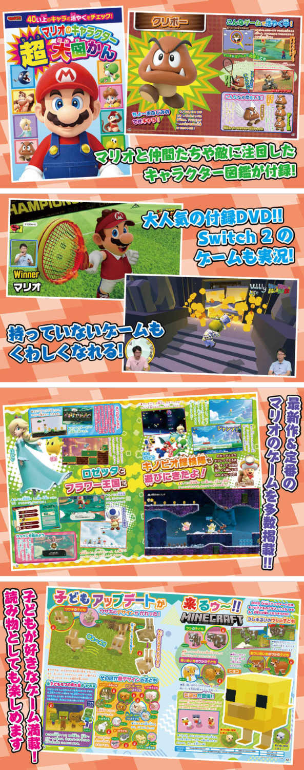 本誌でもマリオのゲームを多数掲載! 『桃鉄2』や『マイクラ』など、子どもたちに人気のゲームのこともわかる! ゲームを持っていなくても読んで楽しい、知ってビックリの情報が満載♪