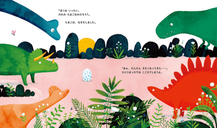 僕は認可保育園で園長として勤務し、保育園でも『まいごのたまご』を読み聞かせしていますが、2、3、4、5歳に大人気の絵本です。 読むたびに、新しい虫や植物を発見して楽しんでいます。この本を読んで以来、子どもたちのなかで恐竜が大流行! 女の子も「この恐竜は〇〇だね」と絵本を読みながら興味を持っています。