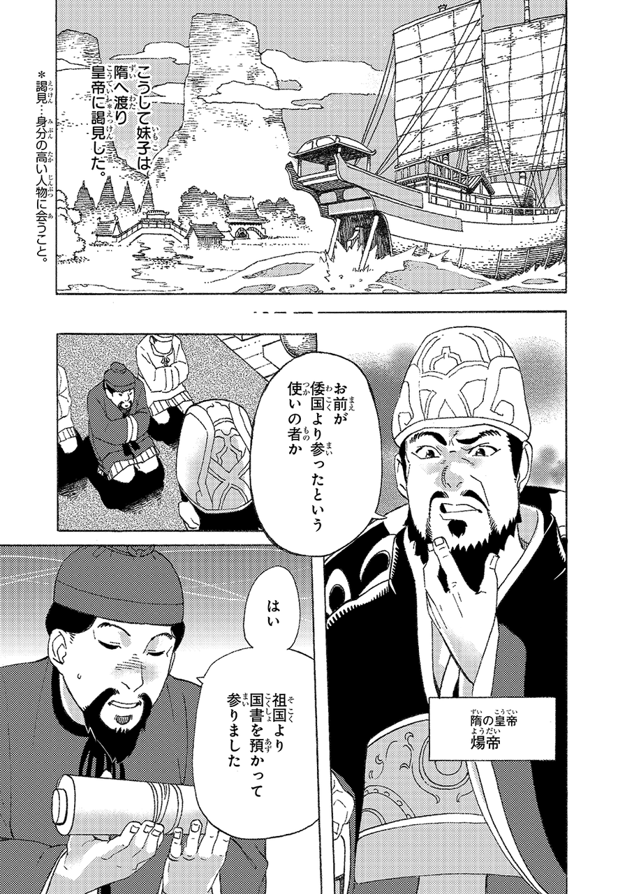 こちらは第1巻で小野妹子が遣隋使として中国大陸に渡った場面です。