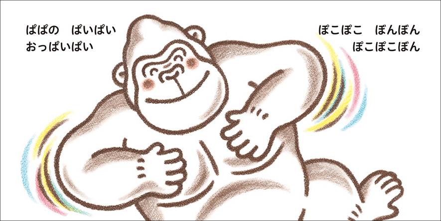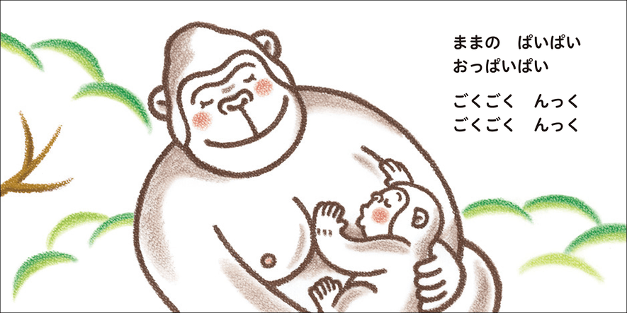 おっと、出ました『おっぱいごりら』(アリス館刊)。手前味噌ですみません、僕が作った絵本です(笑)。赤ちゃんに楽しく美味しく響く言葉を、ふんだんに使いました。