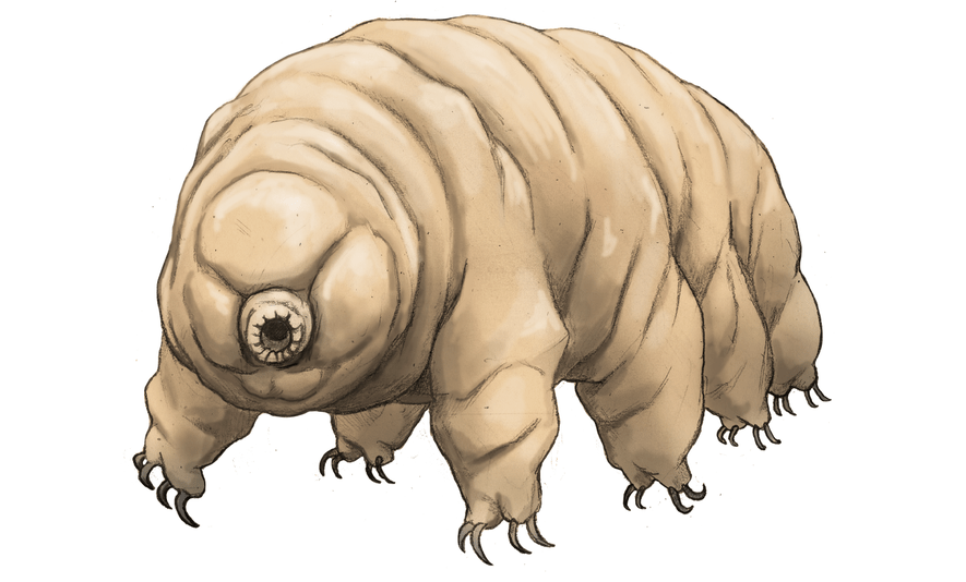 クマムシはわずか体長1ミリほどの生き物よ。ずんぐりむっくりとした見た目をしていて、8つの足でゆっくりのしのしと歩く姿はなかなかにキモいわね。だけど、どんな環境でも死ぬことのない「世界最強の生き物」と言われているわ。151℃の超高温から、マイナス273℃の絶対零度にも耐えることが可能で、真空から75000気圧の圧力にも耐えられるタフさがあり、体重の85%を占める水分を3%に減らした極度の乾燥状態でも生きられるのよ。