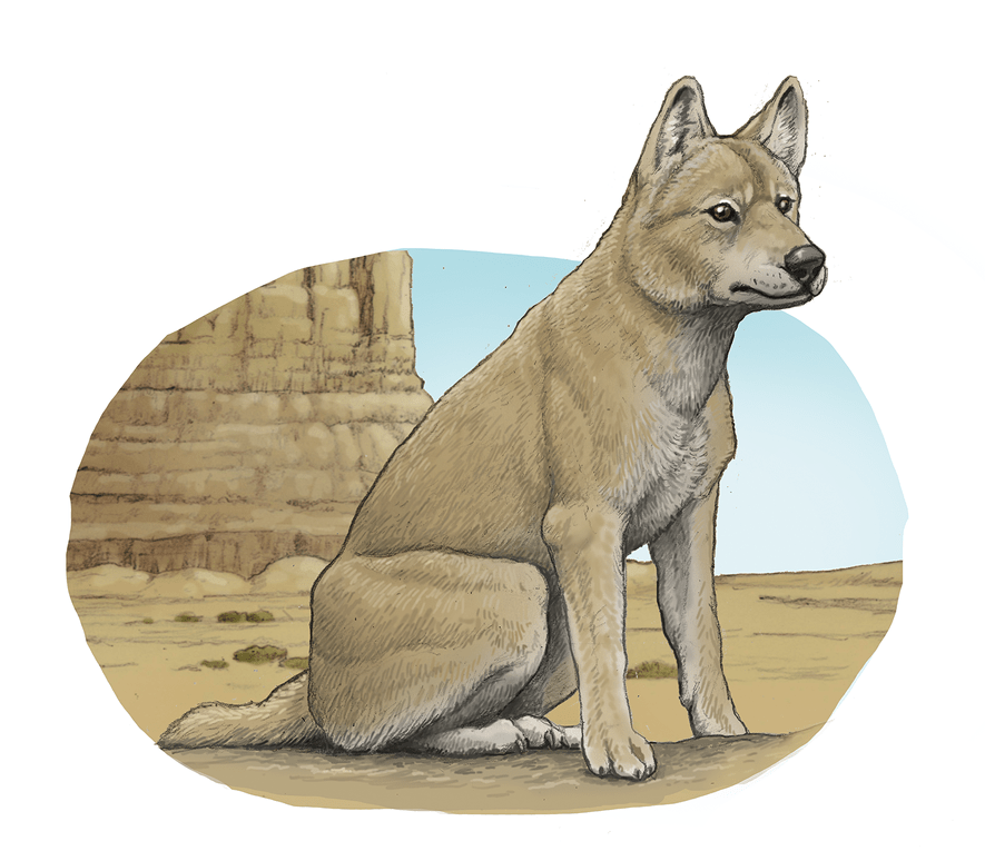茶色い毛並みとピンと立った三角耳、もふもふとしたあの尻尾は柴犬…? でも、こんな所にいるならディンゴでしょうね。野生では群れで生活するオオカミや野犬に近い生き物で意外とどう猛。家畜のヒツジを襲ってしまうだけじゃなく、過去数十年にさかのぼると子供が襲われて死亡する事故も起きているのよ。元を辿れば犬もオオカミの仲間…ディンゴはその進化の途中の姿なのかもしれないわね。